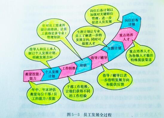 員工發(fā)展方面,要幫助知識型員工做好職業(yè)生涯規(guī)劃。這里我翻拍了一本人力資源書中的員工發(fā)展過程圖: