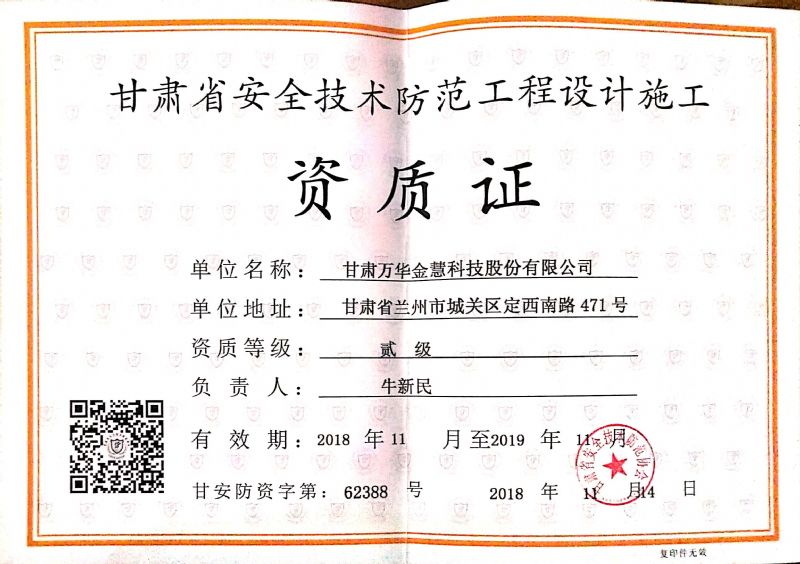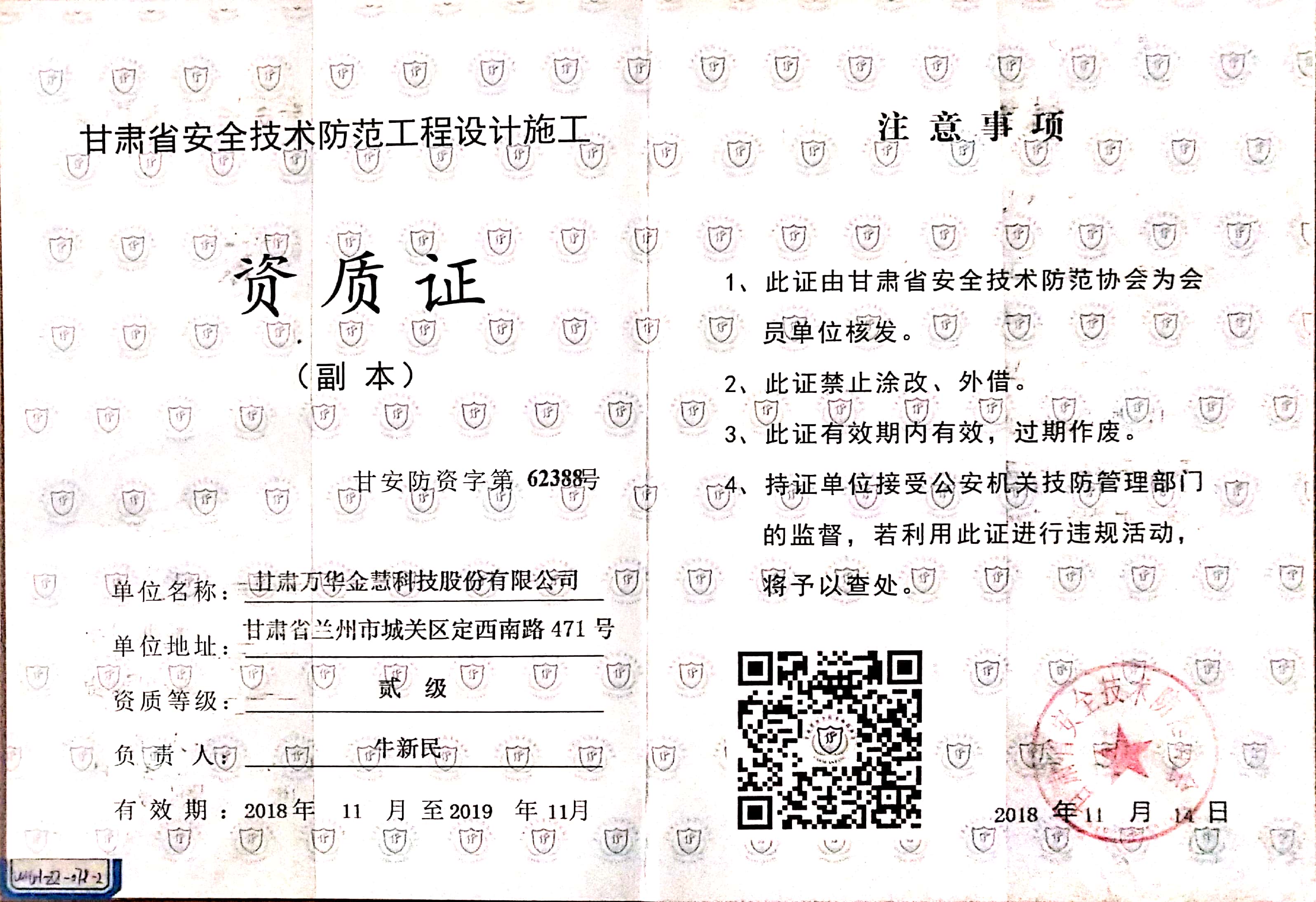 甘肅省安全技術(shù)防范協(xié)會(huì) 甘肅省安全技術(shù)防范工程設(shè)計(jì)施工資質(zhì)證