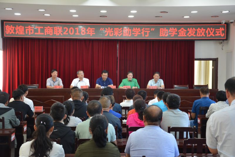 2018年8月17日,敦煌市工商聯(lián)“光彩助學(xué)行”活動(dòng)在敦煌中學(xué)舉行。敦煌千年古城文化發(fā)展有限公司副總經(jīng)理牛英霓向受助大學(xué)生捐贈(zèng)現(xiàn)金。