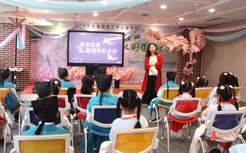 7月15日,2019萬華集團(tuán)員工子女活動“誦讀經(jīng)典 做國學(xué)好少年”夏令營在三維互聯(lián)網(wǎng)創(chuàng)新創(chuàng)業(yè)大廈5樓歡樂開營。