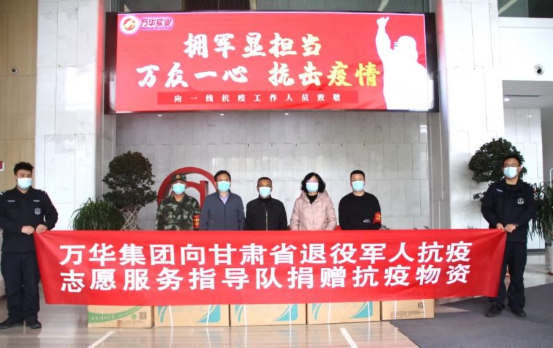 11月1日下午,萬華集團(tuán)總經(jīng)理牛新偉將已經(jīng)過消殺的12箱抗疫物資向甘肅省退役軍人志愿抗疫指導(dǎo)隊(duì)捐贈(zèng),其中包括:21000個(gè)口罩、100套防護(hù)服、100個(gè)護(hù)目鏡、100個(gè)醫(yī)用隔離面罩。